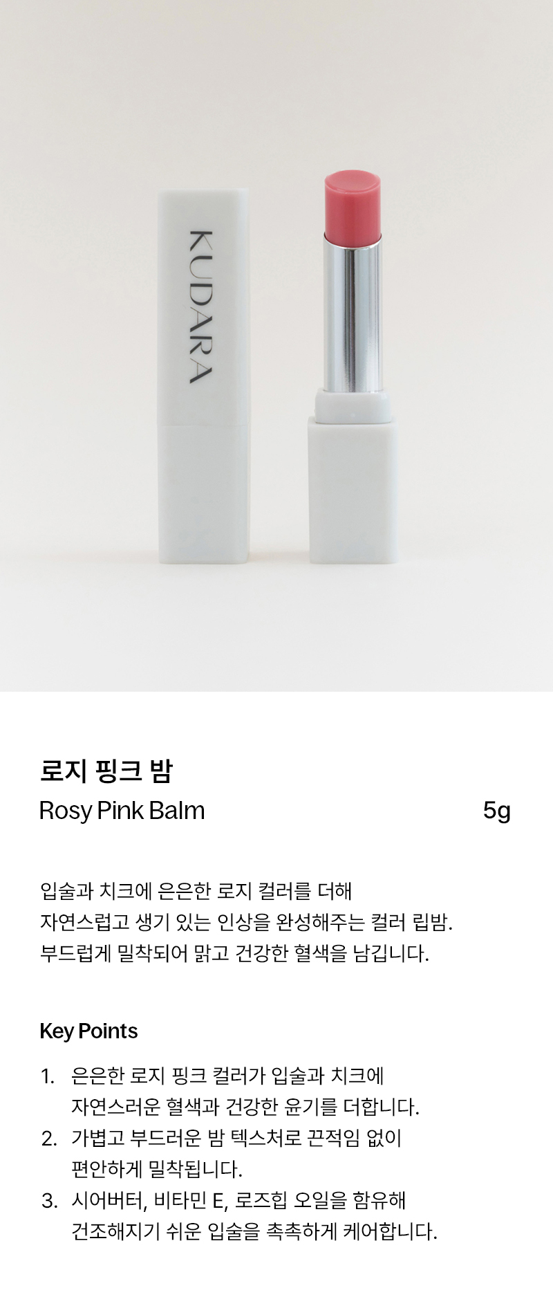 - 맑은 로즈 핑크 컬러로 생기를 더하는 컬러 밤